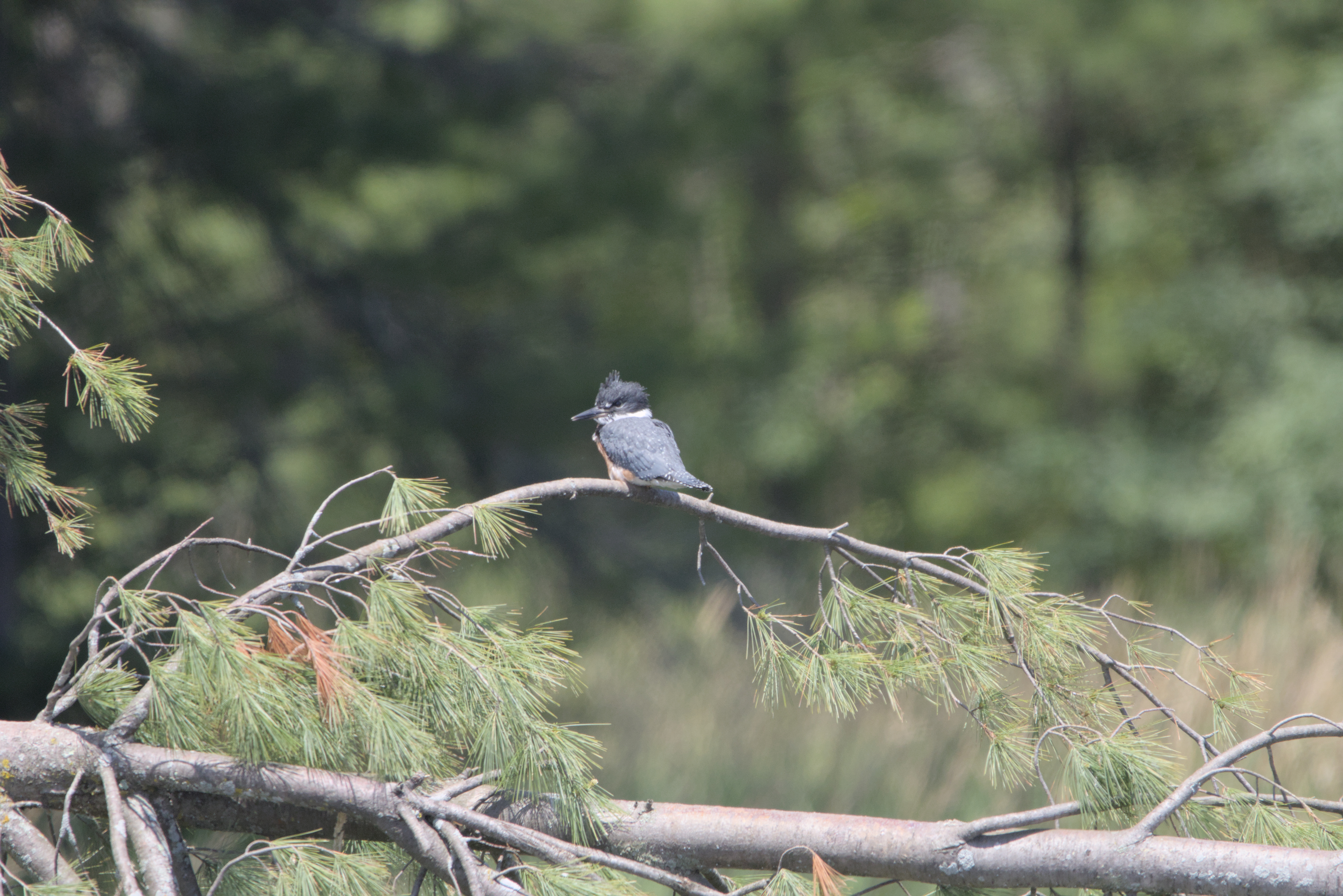 The belted kingfisher (Megaceryle alcyon) is a large, conspicuous water kingfisher, native to North America.