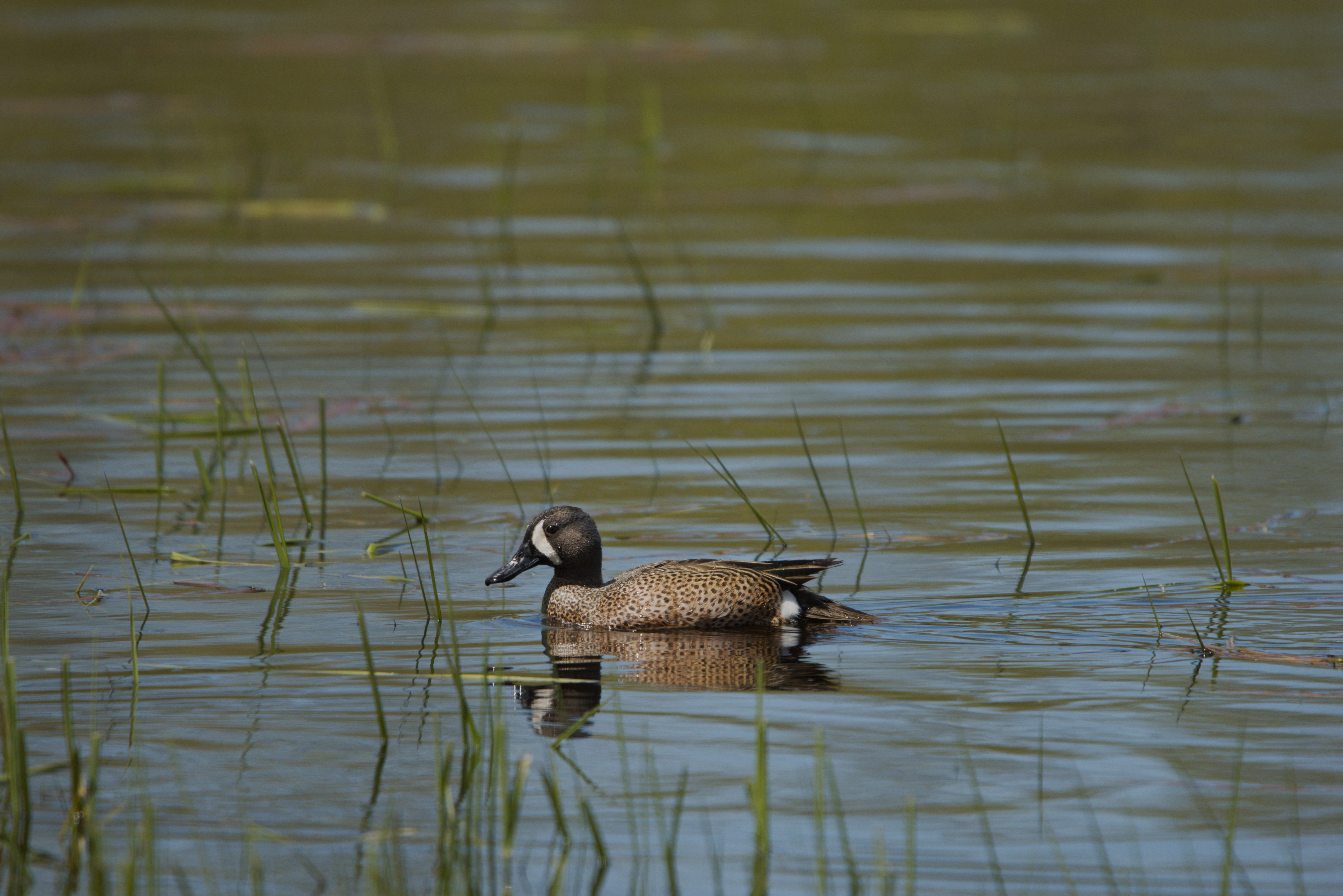 The blue-winged teal (Spatula discors) is a species of bird in the duck, goose, and swan family Anatidae. One of the smaller members of the dabbling duck group, it occurs in North America, where it breeds from southern Alaska to Nova Scotia, and south to northern Texas. It winters along the Pacific and Atlantic coasts and south into the Caribbean islands and Central America.