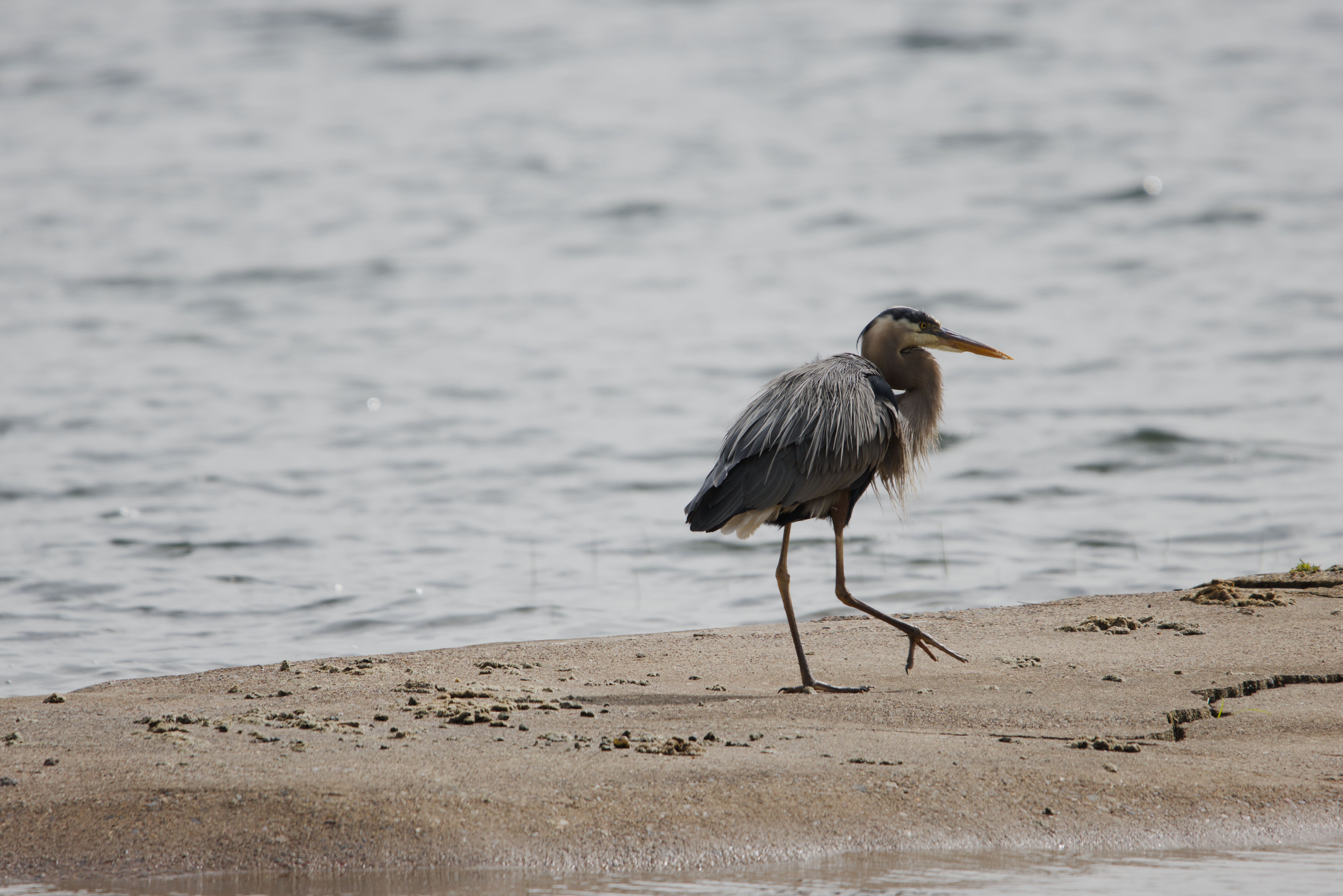 The great blue heron is a large wading bird in the heron family Ardeidae, common near the shores of open water and in wetlands over most of North and Central America, as well as far northwestern South America, the Caribbean and the Galápagos Islands. It is occasionally found in the Azores and is a rare vagrant to Europe. An all-white population found in south Florida and the Florida Keys is known as the great white heron. Debate exists about whether these white birds are a color morph of the great blue heron, a subspecies of it, or an entirely separate species.