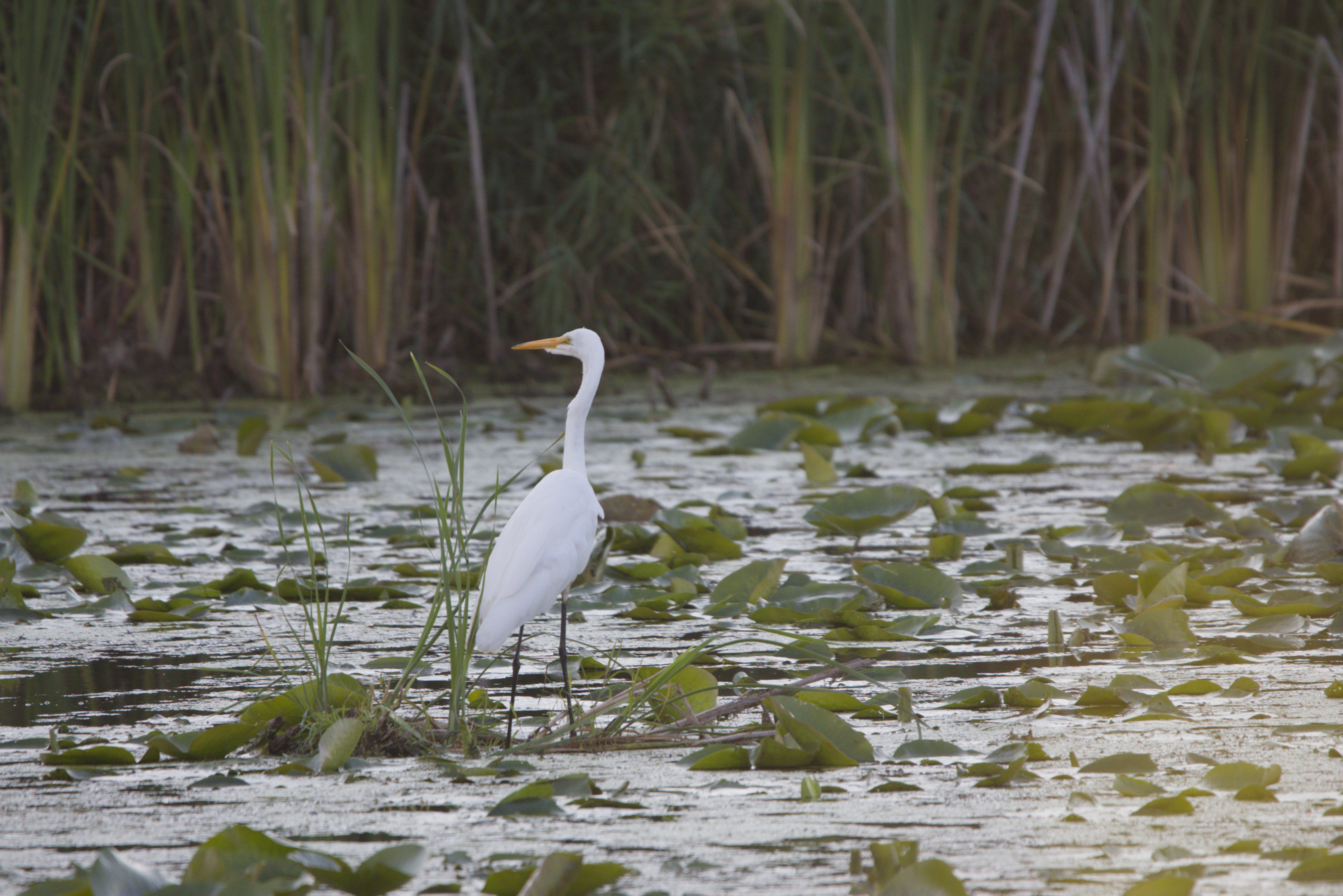 The great egret, also known as the common egret, large egret, great white egret, or great white heron, is a large, widely distributed egret. The four subspecies are found in Asia, Africa, the Americas, and southern Europe. Recently, it has also been spreading to more northern areas of Europe. Distributed across most of the tropical and warmer temperate regions of the world, it builds tree nests in colonies close to water.