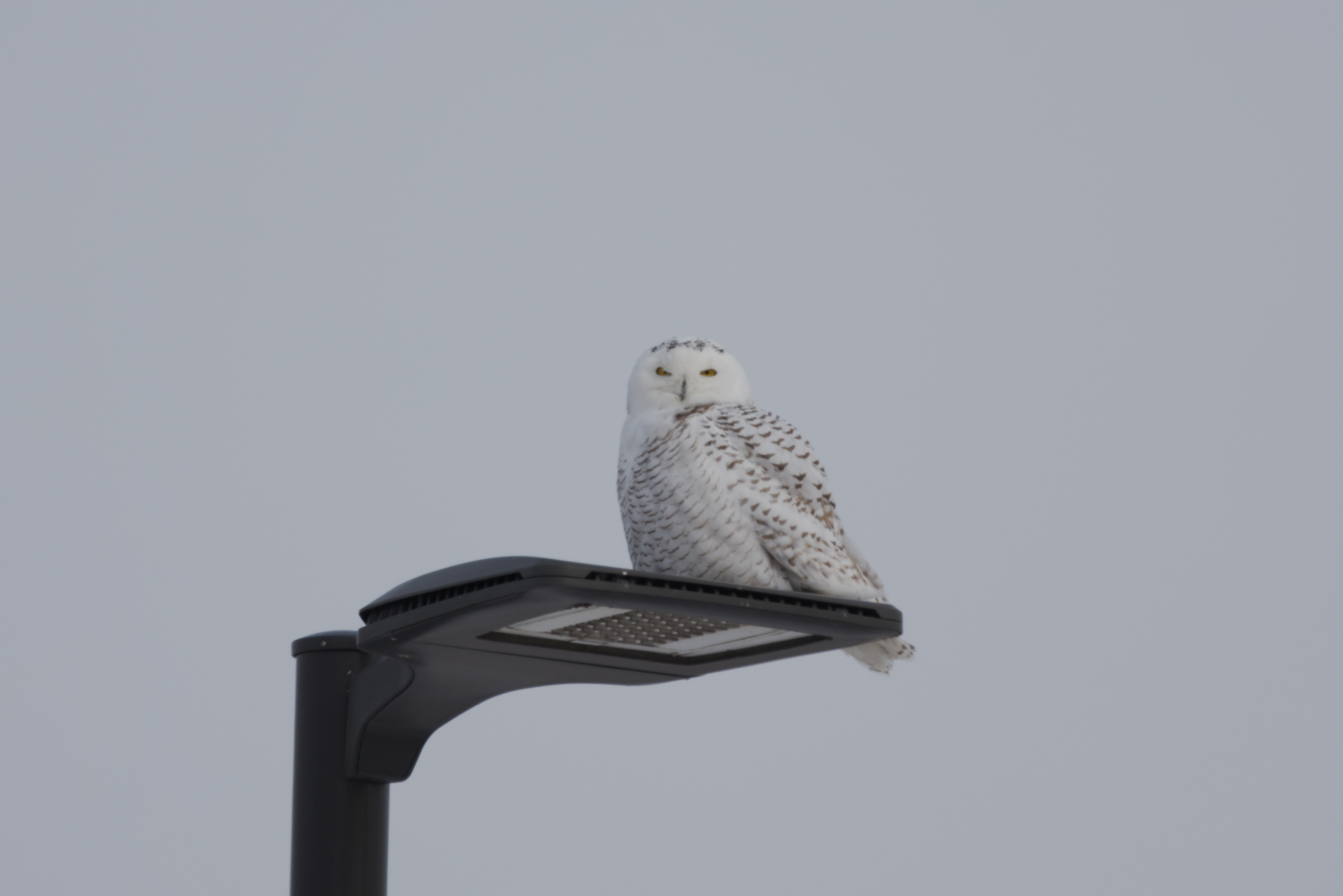 The snowy owl, also known as the polar owl, the white owl and the Arctic owl, is a large, white owl of the true owl family. Snowy owls are native to the Arctic regions of both North America and the Palearctic, breeding mostly on the tundra. It has a number of unique adaptations to its habitat and lifestyle, which are quite distinct from other extant owls. One of the largest species of owl, it is the only owl with mainly white plumage. Males tend to be a purer white overall while females tend to have more extensive flecks of dark brown. Juvenile male snowy owls have dark markings and may appear similar to females until maturity, at which point they typically turn whiter. The composition of brown markings about the wing, although not foolproof, is the most reliable technique for aging and sexing individual snowy owls.