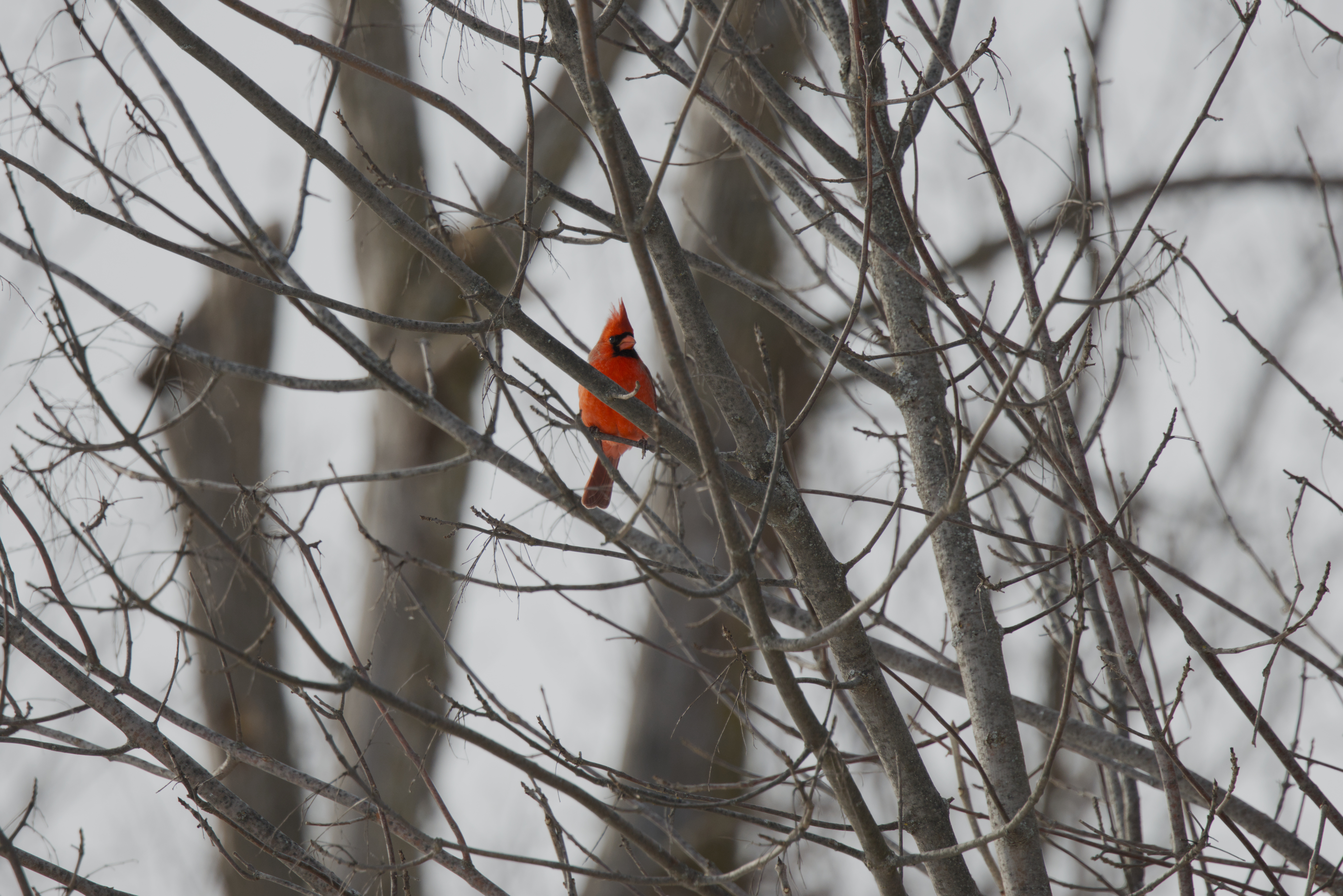 The northern cardinal, also commonly known as the common cardinal, red cardinal, or simply cardinal, is a bird in the genus Cardinalis. It can be found in southeastern Canada, through the eastern United States from Maine to Minnesota to Texas, New Mexico, southern Arizona, southern California and south through Mexico, Belize, and Guatemala. It is also an introduced species in a few locations such as Bermuda and all major islands of Hawaii since its introduction in 1929. Its habitat includes woodlands, gardens, shrublands, and wetlands. It is the state bird of Illinois, Indiana, Kentucky, North Carolina, Ohio, Virginia, and West Virginia.