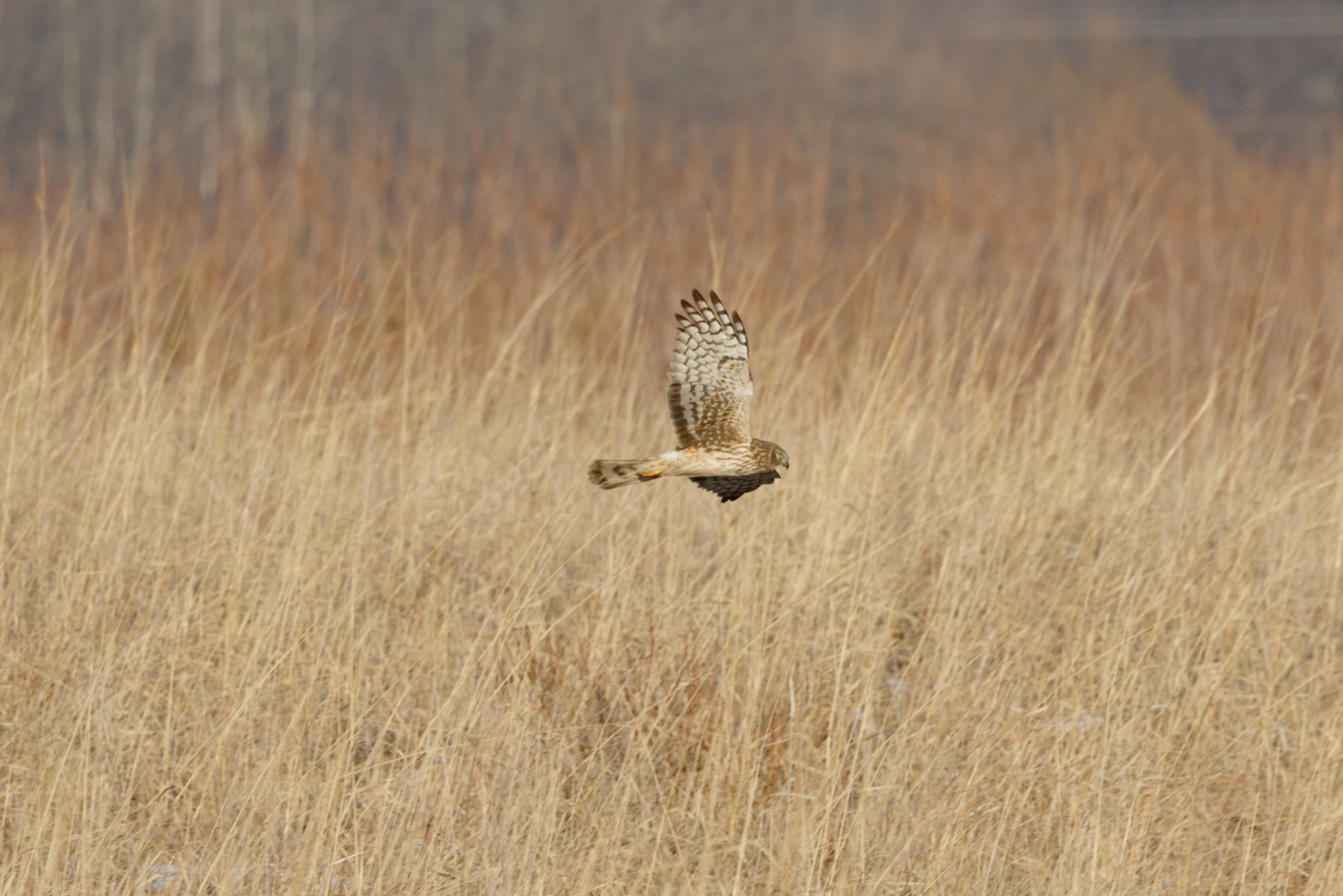 Circus cyaneus hudsonius The northern harrier (Circus hudsonius), also known as the marsh hawk or ring-tailed hawk, is a bird of prey. It breeds throughout the northern parts of the Northern Hemisphere in Canada and the northernmost United States. The northern harrier migrates south in winter, with breeding birds in Canada and northern Great Plains of the U.S. moving to the American south, Mexico, and Central America. In the midwestern, mountain west, and north Atlantic states of the U.S., they may be present all year. This bird inhabits prairies, open areas, and marshes.